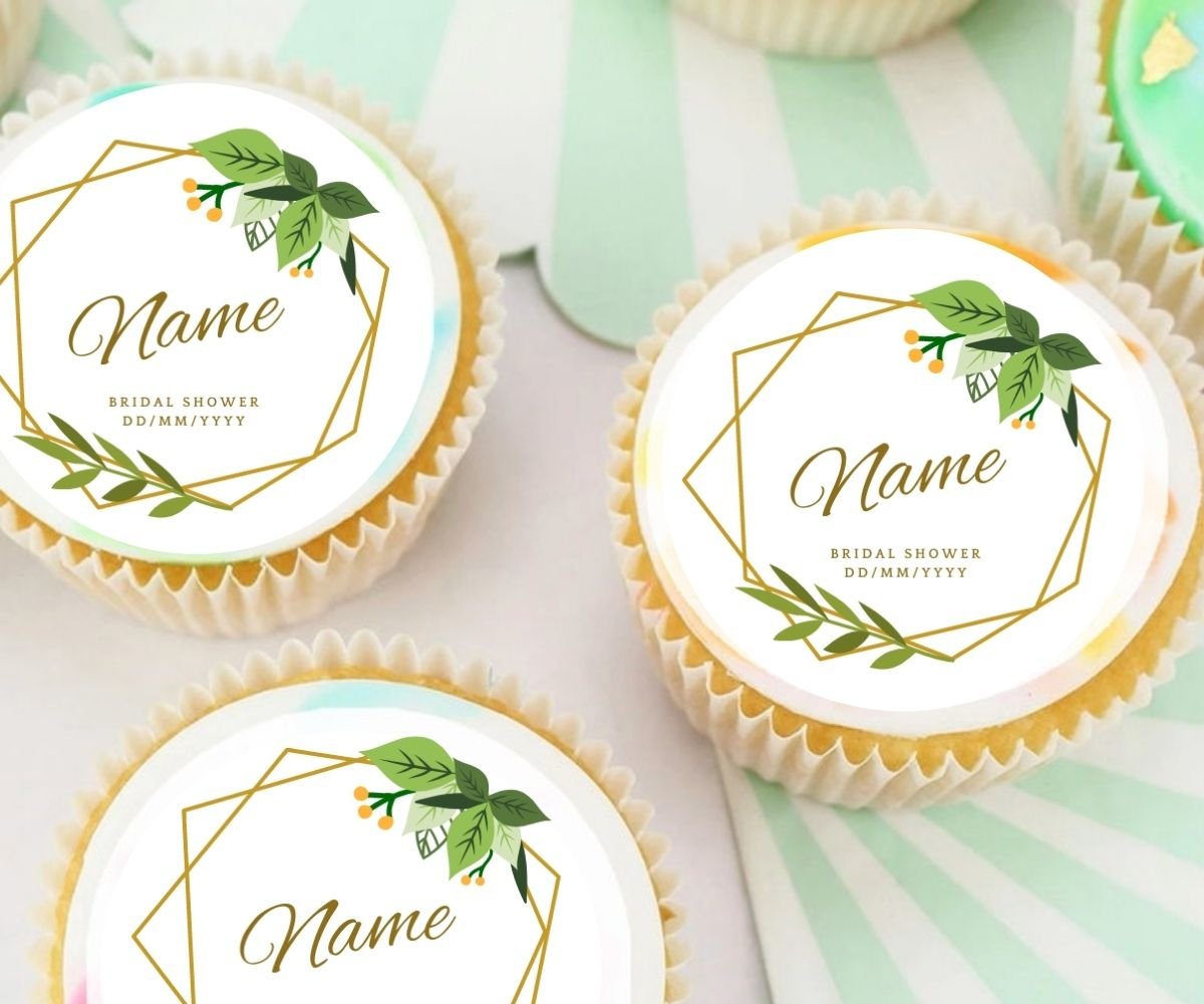 1, 15 OR 30 PERSONALISED Pre Cut Bridal Shower / Cupcake or Cookie Edible Toppers / Leaves