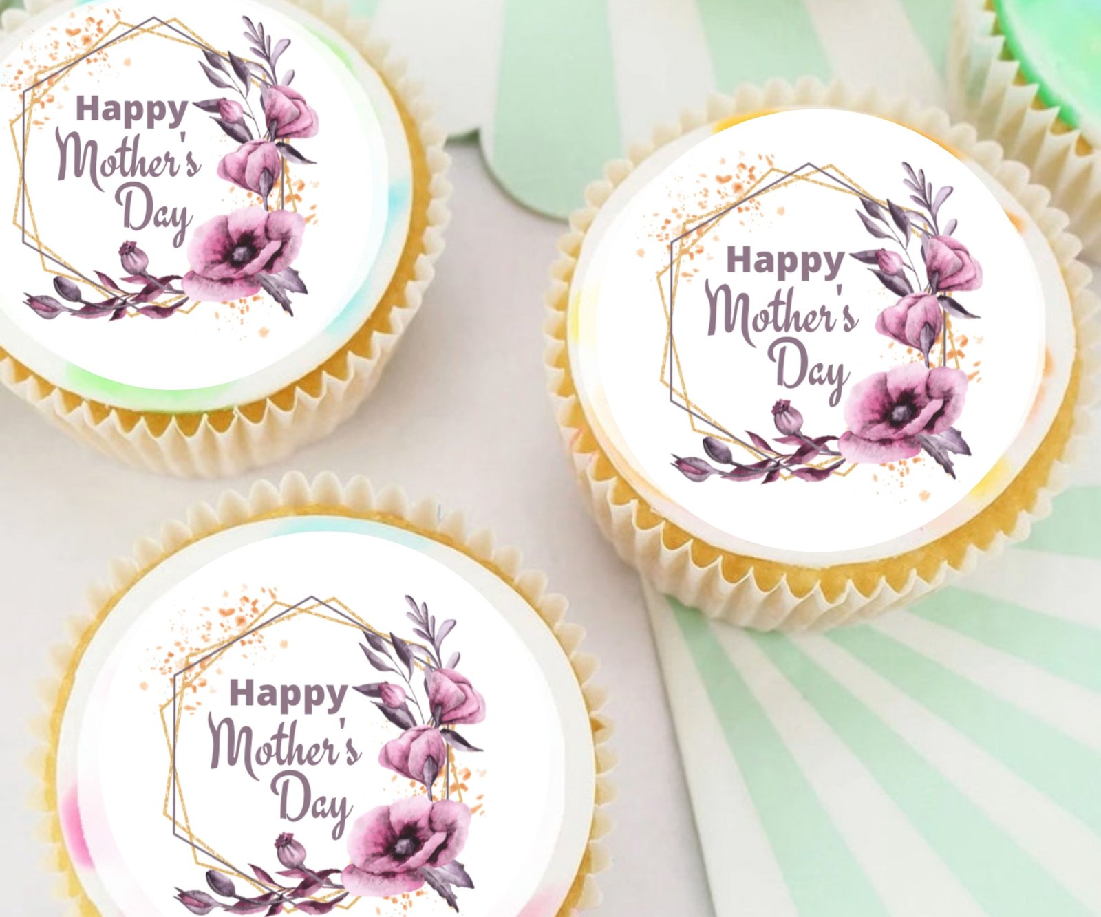 15 OR 30 Mother's Day Cupcake / Cookie Edible Toppers / Gold Geometric Design with Purple Floral W