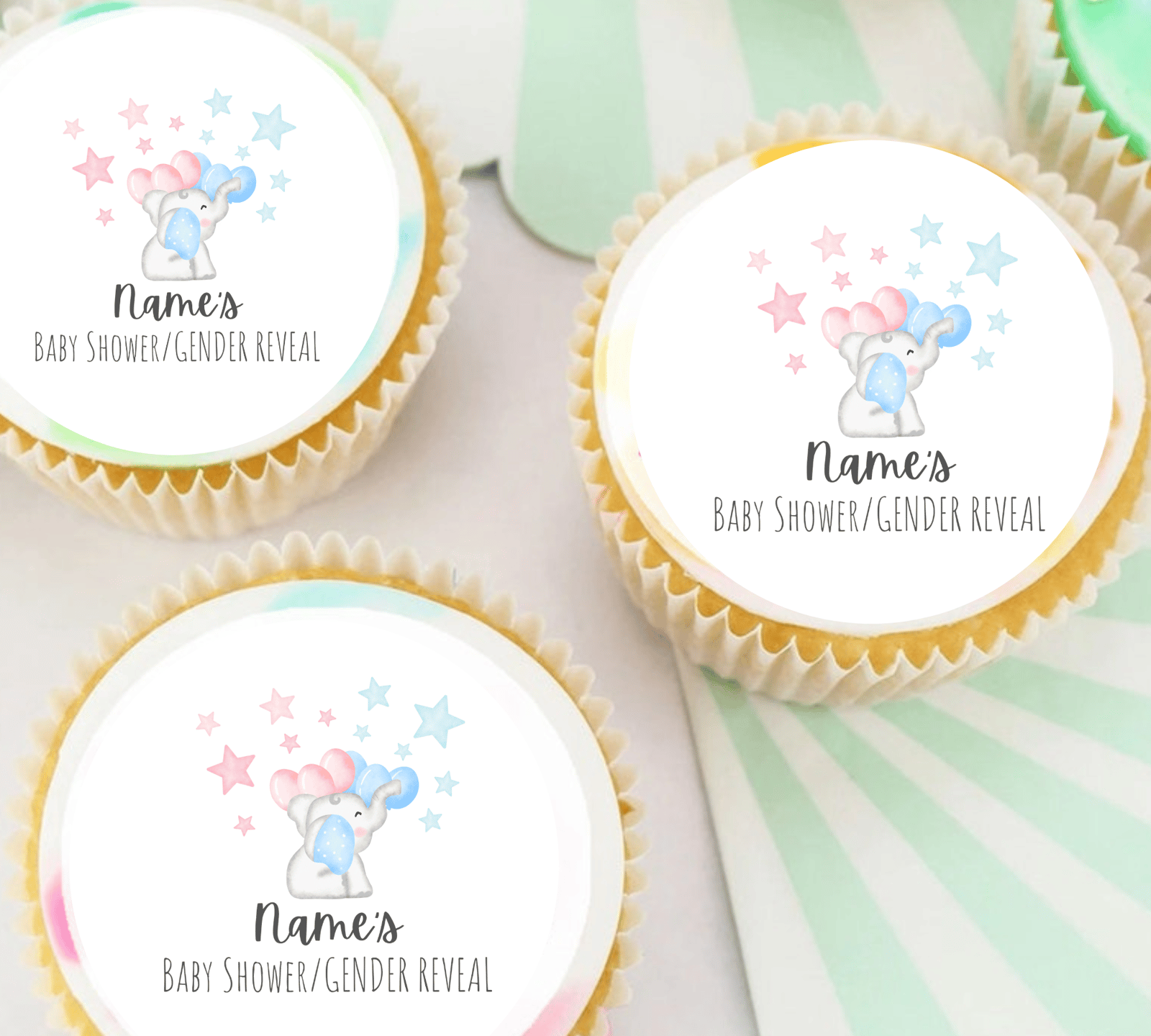 PERSONALISED Pre-cut Gender Reveal Baby Shower / Baby Elephant / Cupcake Cookie Cake Edi
