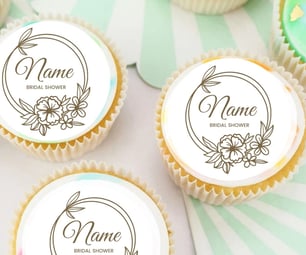 1, 15 or 30 PERSONALISED Pre Cut Bridal Shower / Cupcake or Cookie Edible Toppers / Floral Wreath