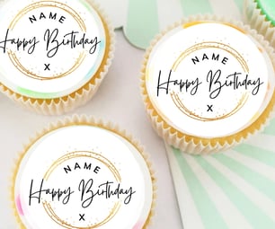 PERSONALISED Pre Cut Happy Birthday Cupcake / Cookie Edible Toppers