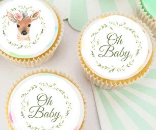 30 Pre Cut Baby Shower Cupcake/Cookie Edible Toppers / Oh Baby and Deer